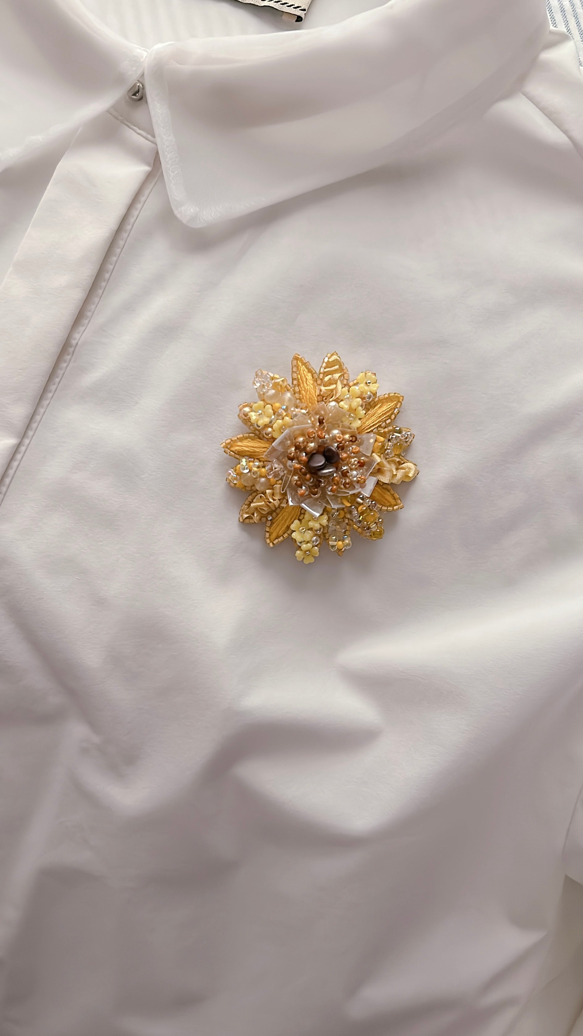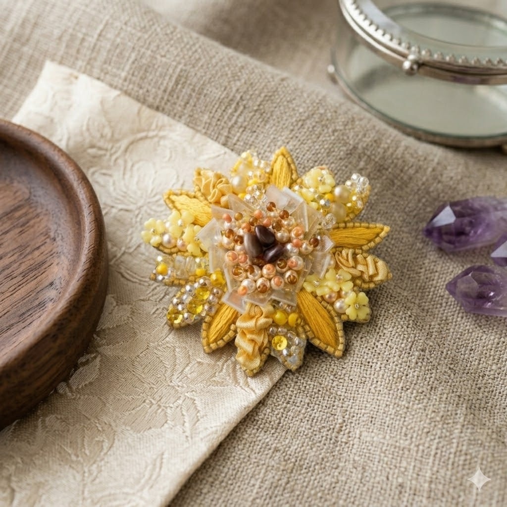 ひまわりのブローチは、明るく元気な印象を与える美しいデザインが特徴です。